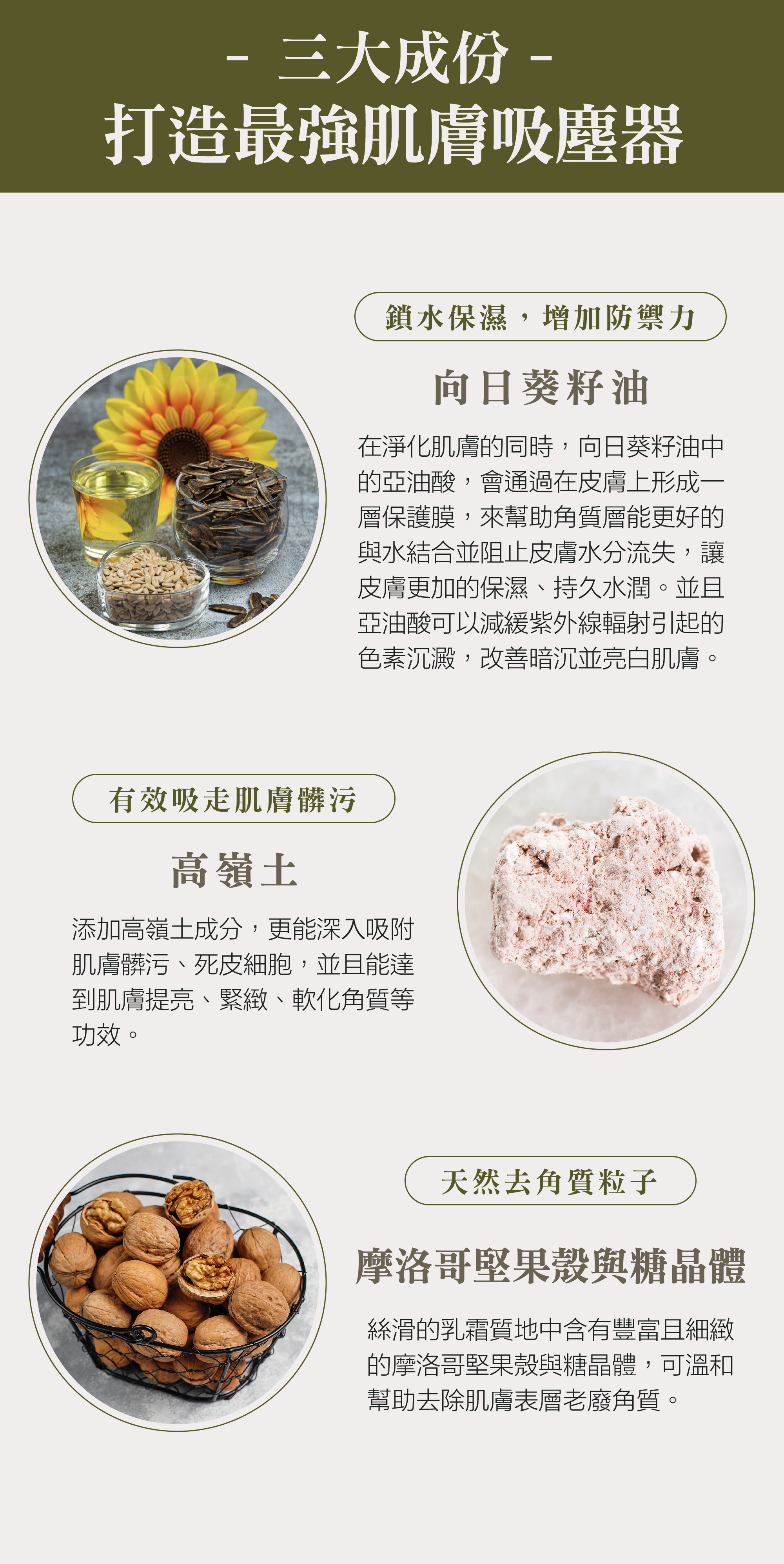 深層清潔|被譽為法國天然資產的 "高嶺土" 可有效吸附肌膚底層髒污。