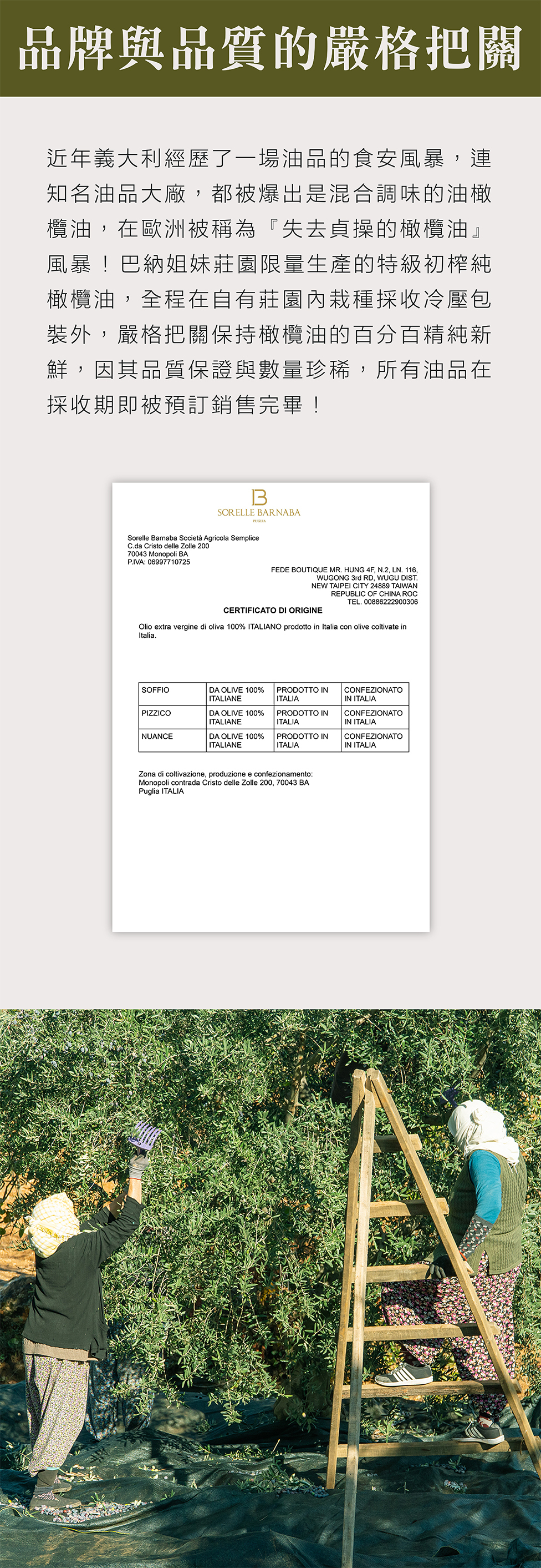 品牌嚴選|精挑嚴選小農限量生產特級初榨純橄欖油,酸價低於0.39%。