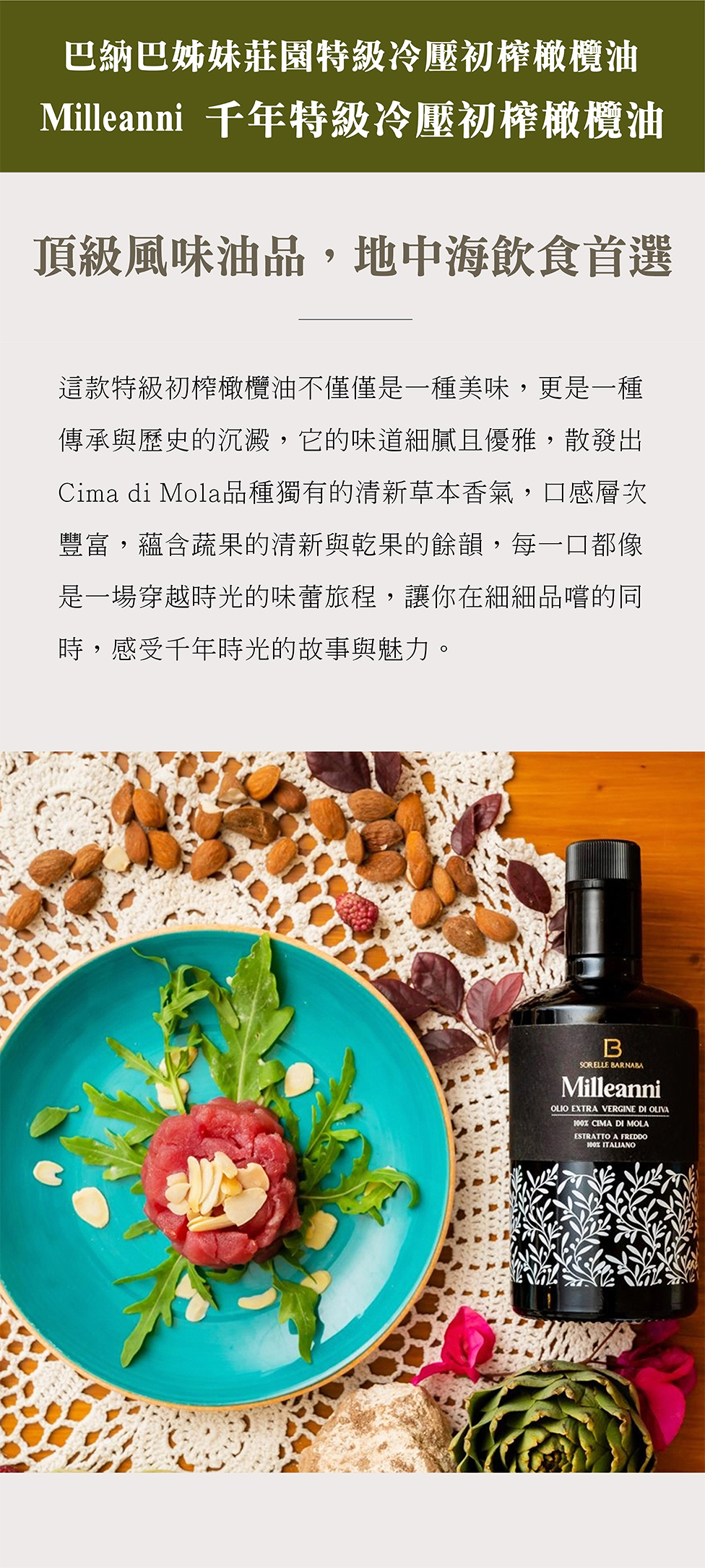 ▍義大利原裝進口單一品種 Cima di Mola特級初榨橄欖油
